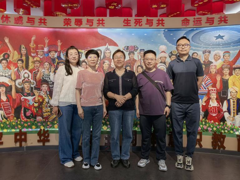 走进公园内的铸牢中华民族共同体意识教育馆,映入眼帘的是一幅恢宏大气、色彩绚丽的五十六个民族大团结画作。教育馆建设了铸牢中华民族共同体意识教育和中华民俗文化两个功能展区,在这里可以了解到石嘴山市的历史、各民族的传统文化、风俗习惯,感受各民族之间的深厚情谊。教工党员们观赏教育馆展示的麦秆画、葫芦烫画、宁夏口弦,对精湛的民间艺术作品赞叹不已。