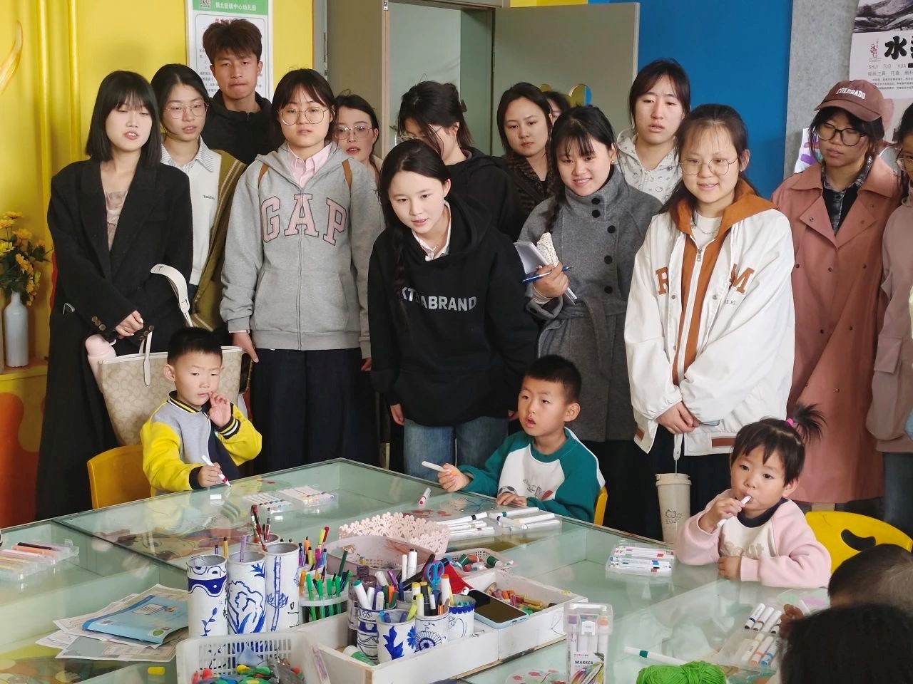 进入室内活动区,学生们分组观摩了建构游戏与角色游戏场景。在“自然工坊”建构区,幼儿利用树枝、木块、松果等自然材料进行立体搭建,教师适时介入引导合作分工;在“小小医生”角色区,幼儿们通过模拟交易游戏发展社会性技能。观察过程中,马娥老师结合《幼儿园保育教育质量评估指南》要点,现场解析教师“观察-识别-回应”的专业支持策略,强调游戏对儿童发展的多元价值。